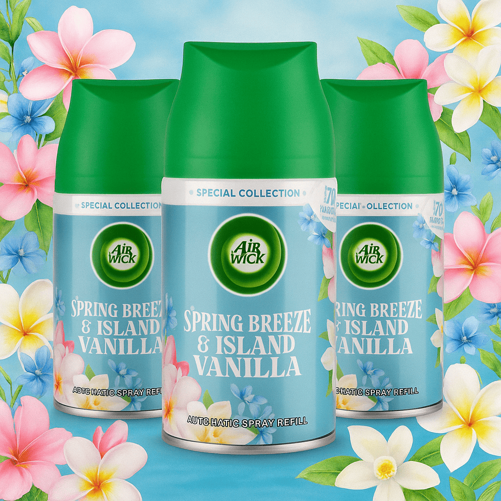4️⃣ Élvezd a friss és édes Spring Breeze & Island Vanilla illatot minden egyes permetezéssel!